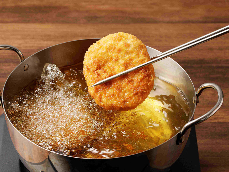 鶏、豚を一切使用していないので、まるでハンバーグのような味わいの新しい食感のメンチカツをお楽しみください。